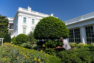 A National Park Service employee working in the Jacqueline Kennedy garden: Photo Credit: National Park Service